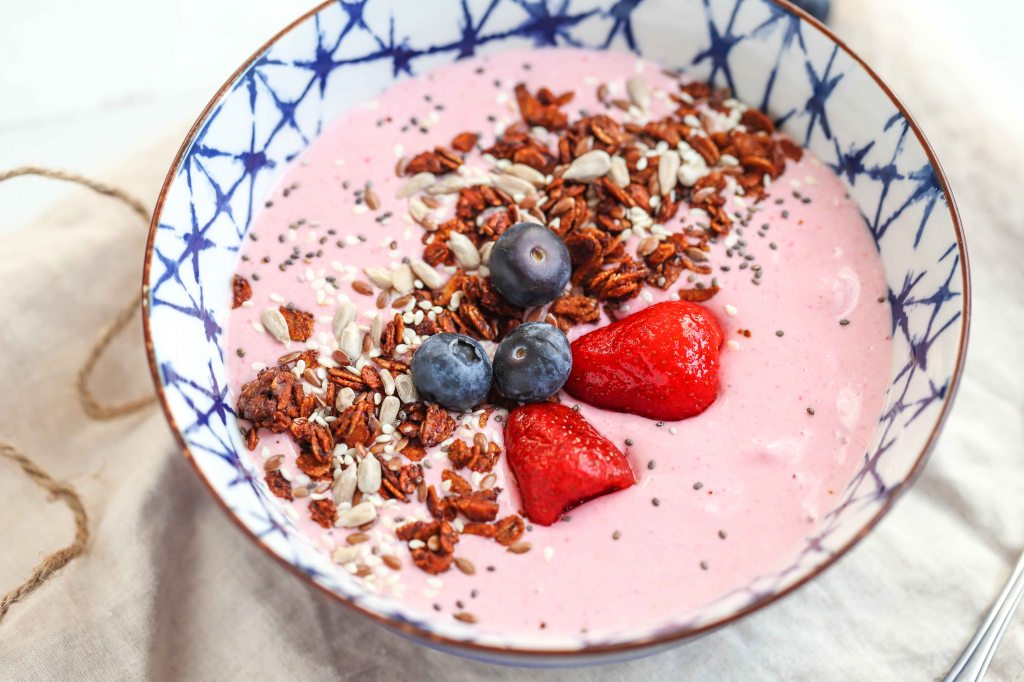 Turn your smoothie into a bowl with this easy smoothie bowl recipe. Here is a recipe for a simple smoothie, but you can make yours with any ingredients and make it as simple or complex as you have time for. Use high protein cottage cheese to ensure a solid amount to protein in your breakfast. Protein for breakfast can help to reduce sugar cravings and keep you feeling full longer.